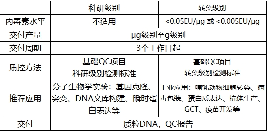赛索飞为您提供高品质质粒制备服务,生产规模灵活,可提供从微克,毫克到克级别;严格的质量控制,确保批次间稳定性;可根据客户要求进行内毒素去除,满足科研和工业级别不同的质粒生产需求。