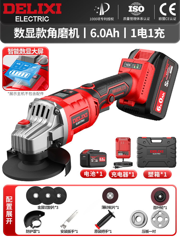 "德力西大功率数显无刷锂电角磨机多功能电动充电式手磨切割打磨机-无刷锂电数显款【6.0Ah一电一充】+全套礼包"商品可能已被商家删除,您可查看其他相似商品!