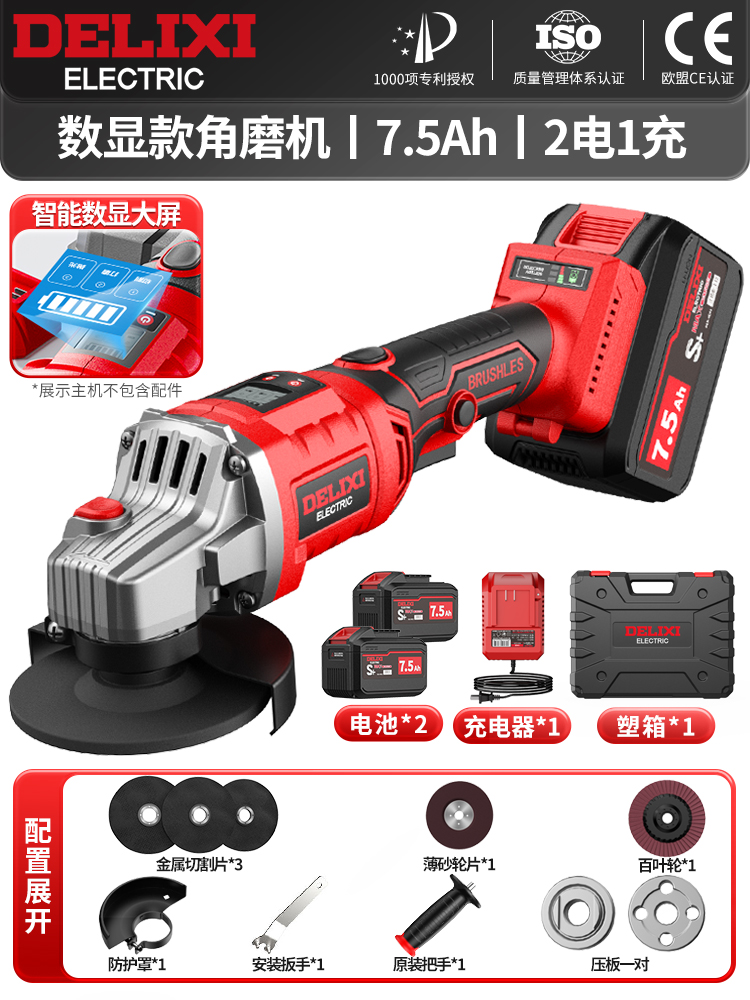 "德力西大功率数显无刷锂电角磨机多功能电动充电式手磨切割打磨机-无刷锂电数显款【7.5Ah两电一充】+全套礼包"商品可能已被商家删除,您可查看其他相似商品!
