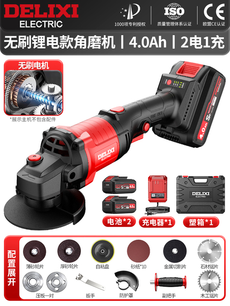 "德力西大功率数显无刷锂电角磨机多功能电动充电式手磨切割打磨机-无刷锂电款【4.0Ah两电一充】+全套礼包"商品可能已被商家删除,您可查看其他相似商品!