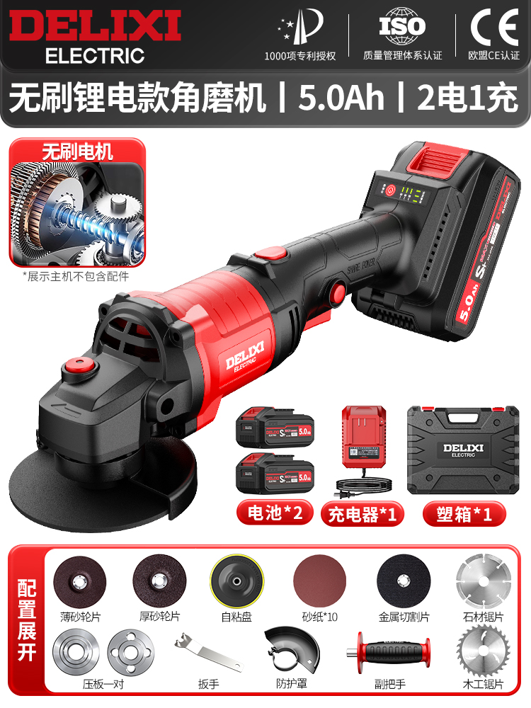 "德力西大功率数显无刷锂电角磨机多功能电动充电式手磨切割打磨机-无刷锂电款【5.0Ah两电一充】+全套礼包"商品可能已被商家删除,您可查看其他相似商品!