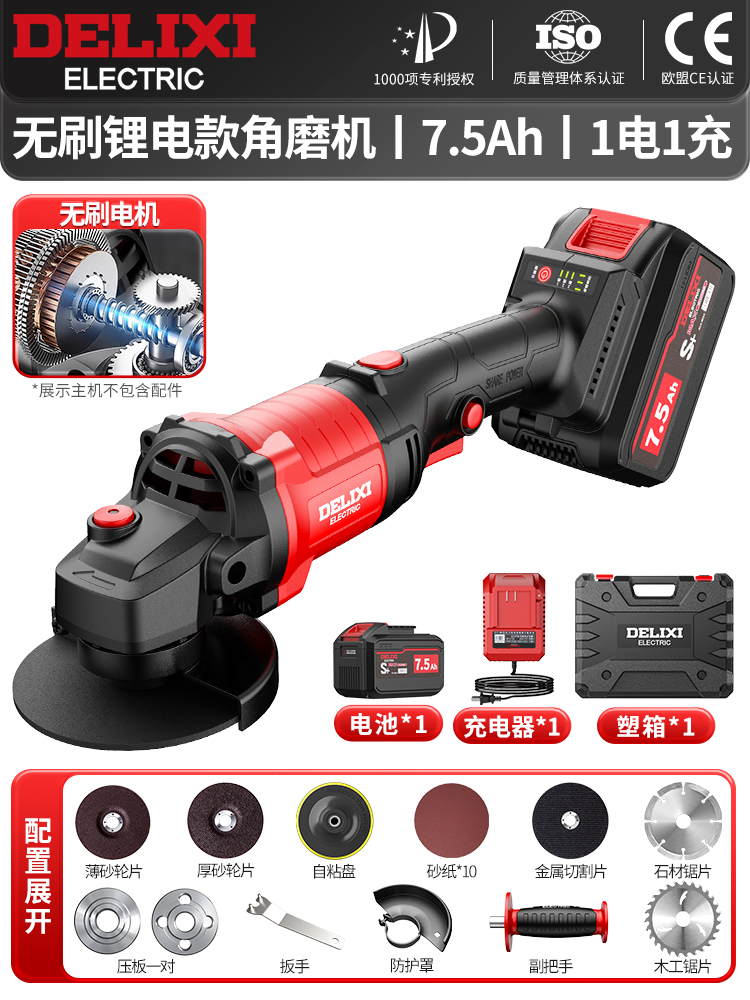 "德力西大功率数显无刷锂电角磨机多功能电动充电式手磨切割打磨机-无刷锂电款【7.5Ah一电一充】+全套礼包"商品可能已被商家删除,您可查看其他相似商品!