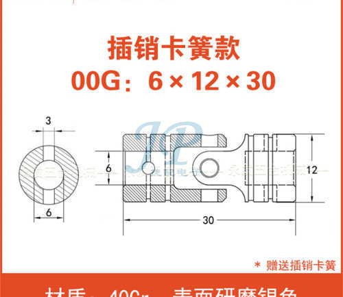 "精密十字连轴万向节联轴器钻孔攻牙机配件40cr不锈钢传动轴十字轴-00G:6*12*30(插销卡簧款)"商品可能已被商家删除,您可查看其他相似商品!