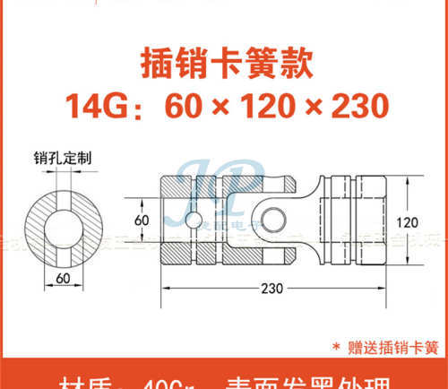 "精密十字连轴万向节联轴器钻孔攻牙机配件40cr不锈钢传动轴十字轴-14G:60*120*230(插销卡簧款)"商品可能已被商家删除,您可查看其他相似商品!