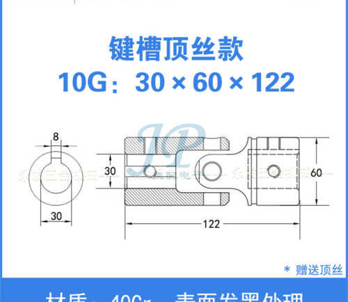 "精密十字连轴万向节联轴器钻孔攻牙机配件40cr不锈钢传动轴十字轴-10G:30*60*122(键槽顶丝款)"商品可能已被商家删除,您可查看其他相似商品!