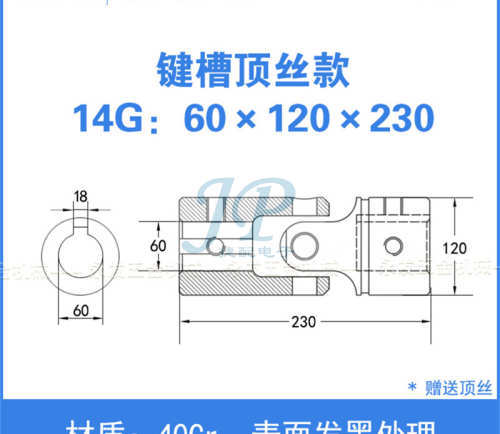"精密十字连轴万向节联轴器钻孔攻牙机配件40cr不锈钢传动轴十字轴-14G:60*120*230(键槽顶丝款)"商品可能已被商家删除,您可查看其他相似商品!