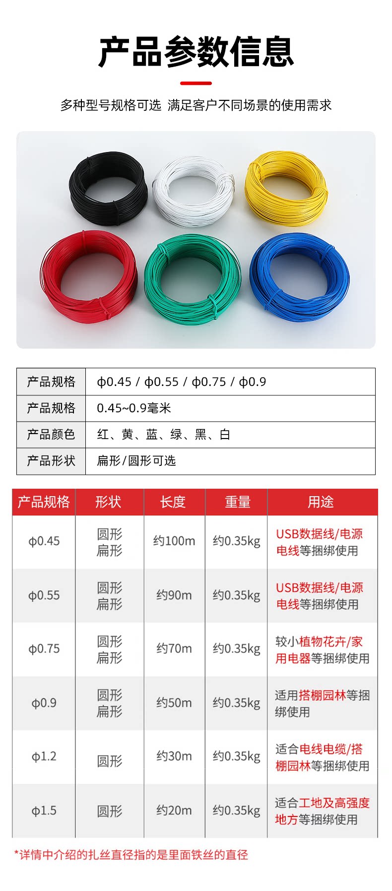 "扎丝扎带包塑铁丝光缆扎线带电镀锌绑丝电缆扎线园艺葡萄架绑扎丝-铁芯0.45黑圆 90米/卷"商品可能已被商家删除,您可查看其他相似商品!