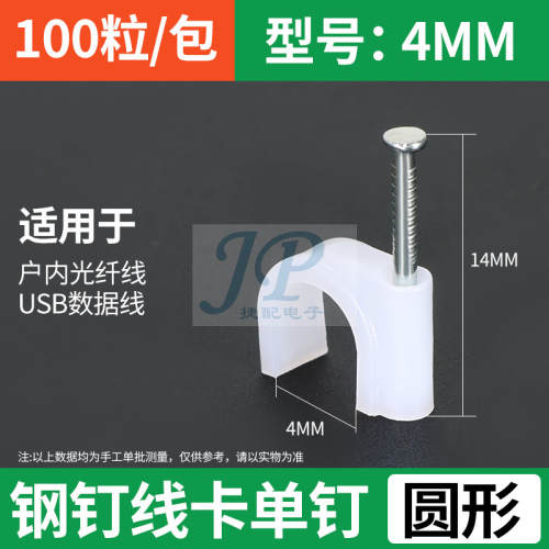 "钢钉线卡子电线固定钉网线钉卡线钉水泥墙钉子塑料卡码卡扣理线器-圆形4MM 100只/包"商品可能已被商家删除,您可查看其他相似商品!