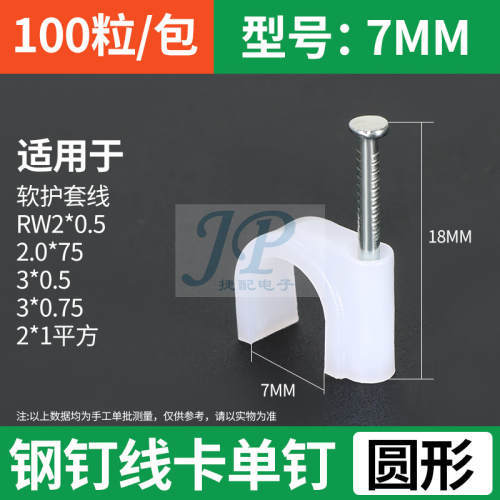 "钢钉线卡子电线固定钉网线钉卡线钉水泥墙钉子塑料卡码卡扣理线器-圆形7MM 100只/包"商品可能已被商家删除,您可查看其他相似商品!