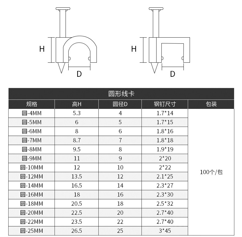 "钢钉线卡子电线固定钉网线钉卡线钉水泥墙钉子塑料卡码卡扣理线器-圆形18MM 100只/包"商品可能已被商家删除,您可查看其他相似商品!