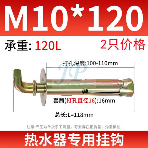 "电热水器挂钩膨胀螺丝安装专用墙壁固定膨胀钩加长螺栓通用型挂钉-M10*120【90度】承重120L(2只)/开孔16mm"商品可能已被商家删除,您可查看其他相似商品!