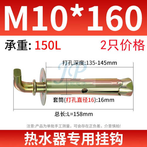"电热水器挂钩膨胀螺丝安装专用墙壁固定膨胀钩加长螺栓通用型挂钉-M10*160【90度】承重150L(2只)/开孔16mm"商品可能已被商家删除,您可查看其他相似商品!