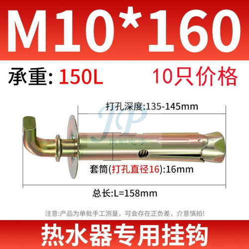 "电热水器挂钩膨胀螺丝安装专用墙壁固定膨胀钩加长螺栓通用型挂钉-M10*160【90度】承重150L(10只)/开孔16mm"商品可能已被商家删除,您可查看其他相似商品!