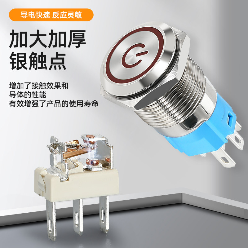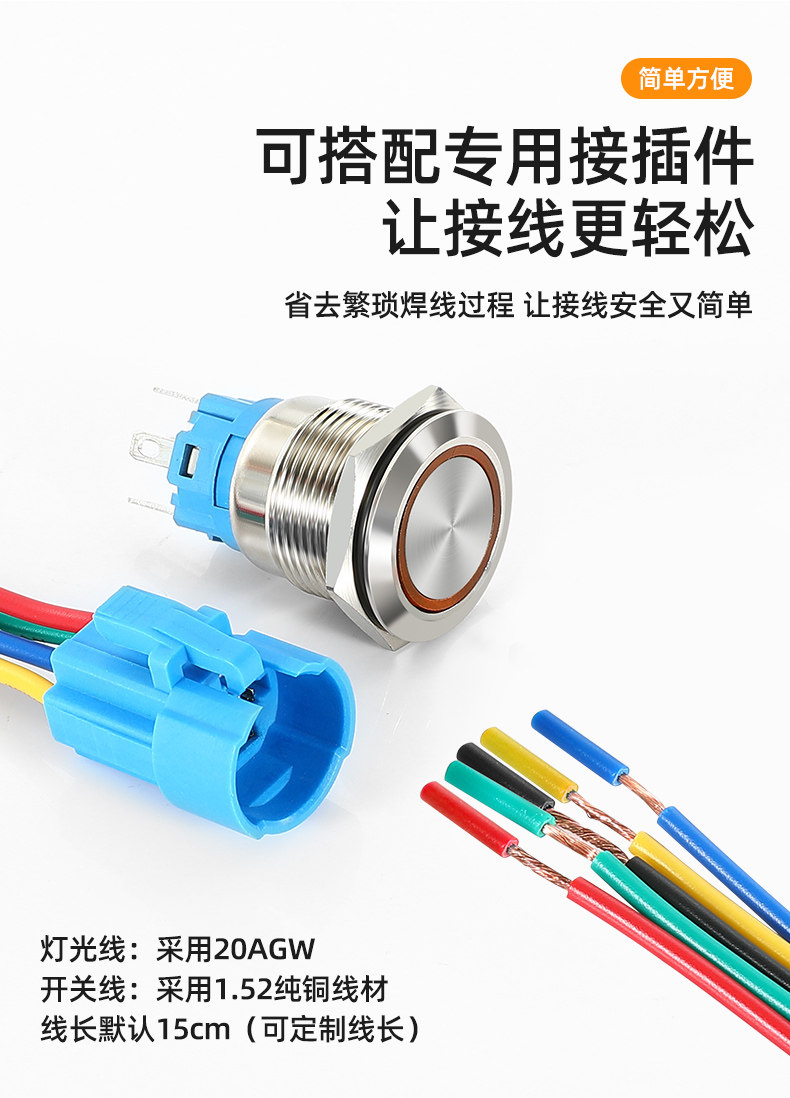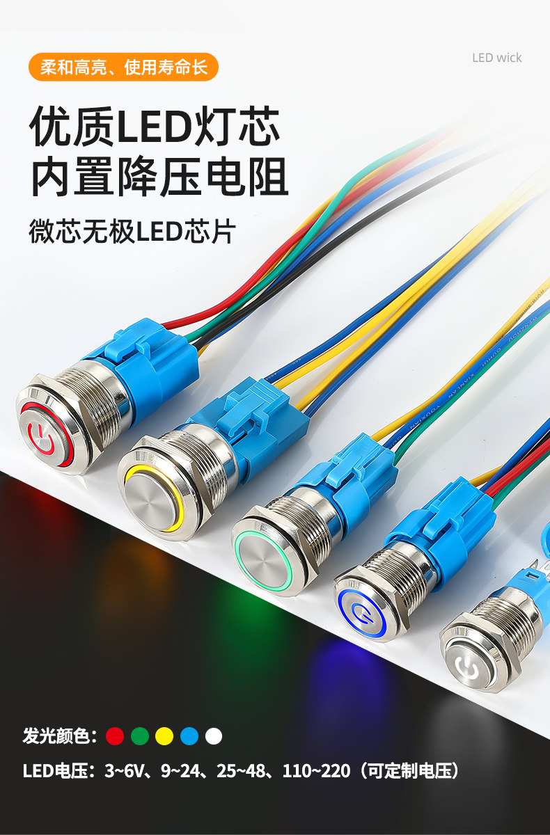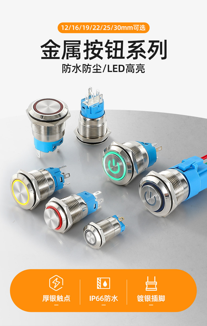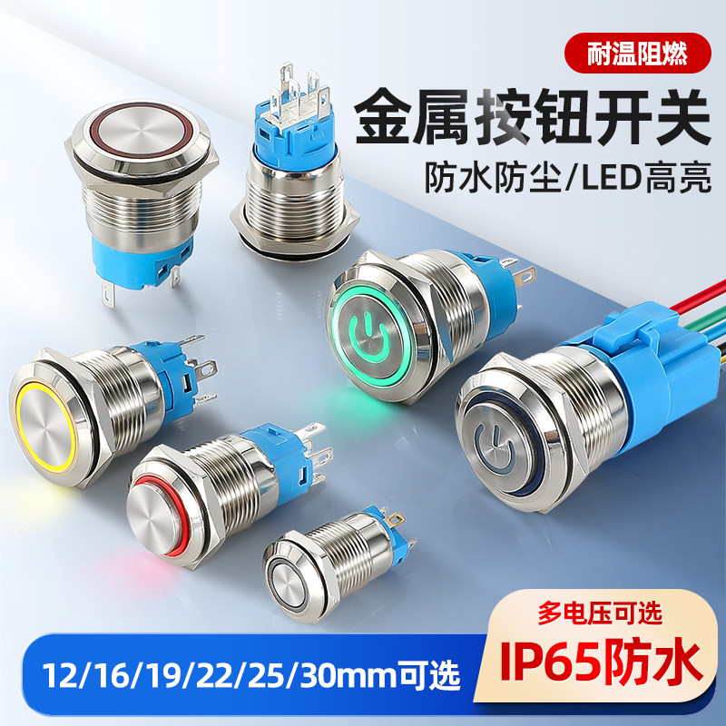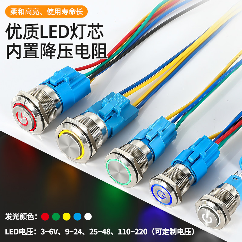 "金属按钮开关12/16/22MM防水自复位自锁带灯圆形点动电源启动按键-12mm 110-220V 自复/带线 黄色环形灯"商品可能已被商家删除,您可查看其他相似商品!