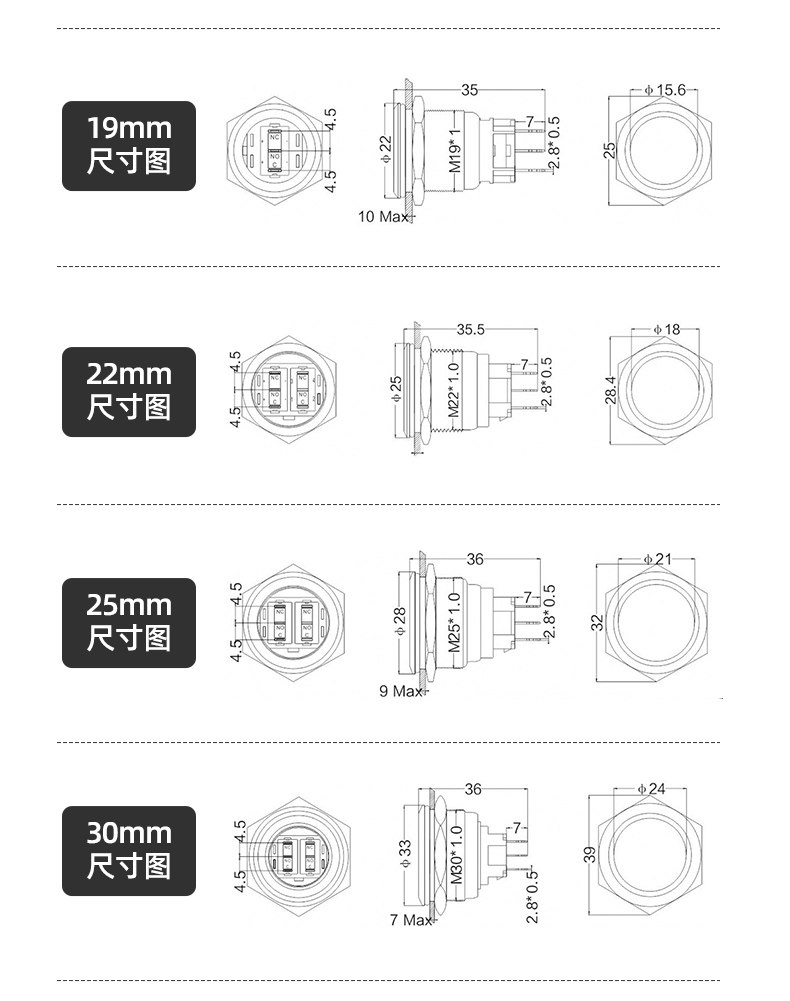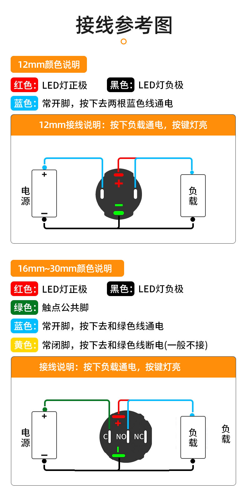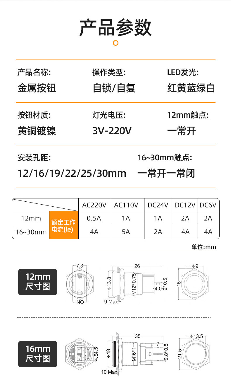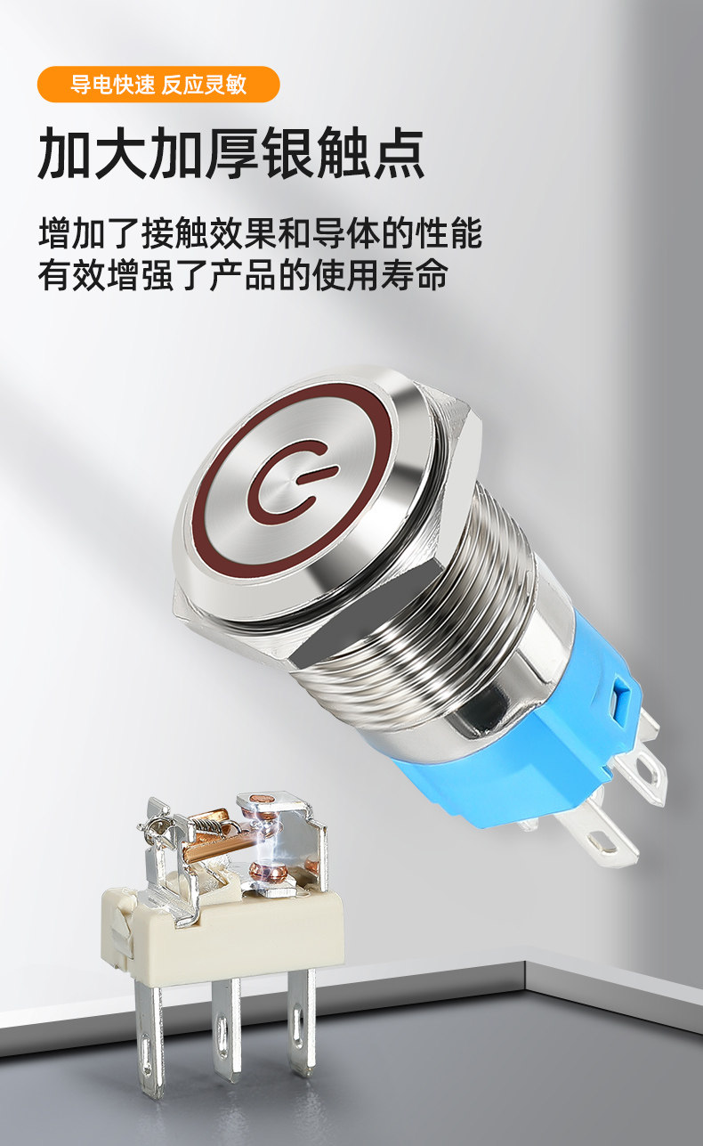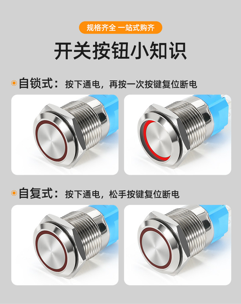 "金属按钮开关12/16/22MM防水自复位自锁带灯圆形点动电源启动按键-12mm 110-220V 自复/带线 黄色环形灯"商品可能已被商家删除,您可查看其他相似商品!