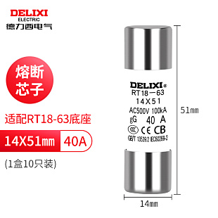 "德力西电气熔断器底座熔芯圆筒形rt18-32A64A16A插入式保险丝家用-14*51-40A(10只装)"商品可能已被商家删除,您可查看其他相似商品!