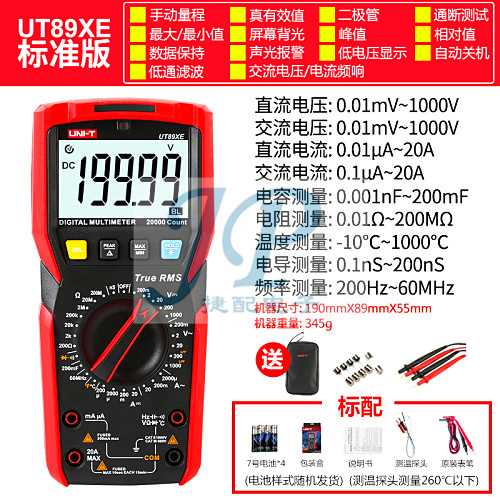 "优利德高精度四位半万用表全档位智能防烧真有效值万能表自动量程-UT89XE(官方标配)送布包+特尖表笔+5个保险丝"商品可能已被商家删除,您可查看其他相似商品!