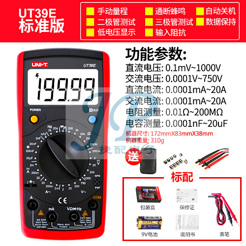 "优利德高精度四位半万用表全档位智能防烧真有效值万能表自动量程-UT39E(官方标配)送布包+特尖表笔+5个保险丝"商品可能已被商家删除,您可查看其他相似商品!