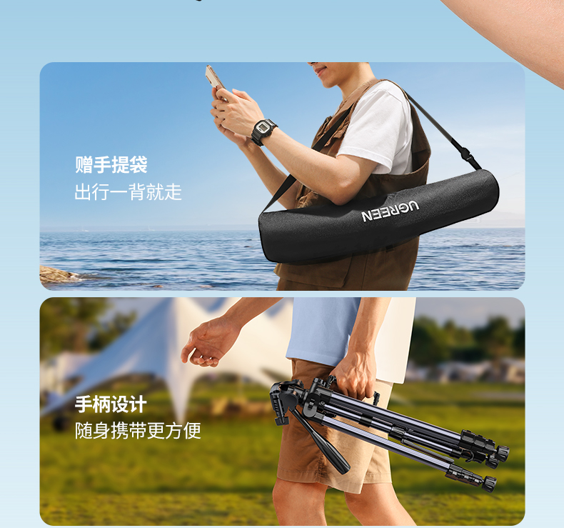 "绿联相机三脚架手机架直播支架单反摄影微单拍摄补光灯适用佳能索尼落地户外vlog拍摄神器专业拍照云台三角架-【1.45米专业级-铝合金-更稳更轻】配收纳袋+手机夹"商品可能已被商家删除,您可查看其他相似商品!
