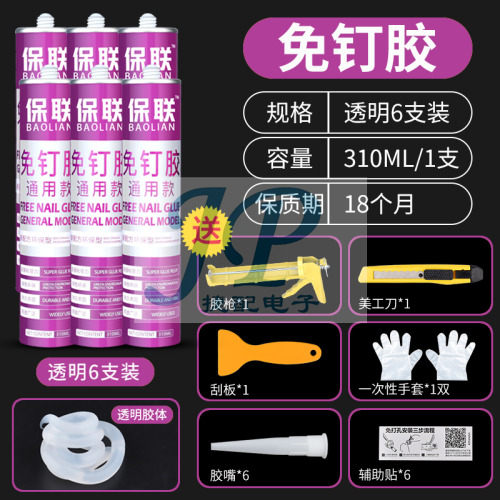 "免钉胶强力胶瓷砖免打孔粘胶透明玻璃胶水置物架踢脚线木工专用-通用型6支透明【环保强力】送1套工具"商品可能已被商家删除,您可查看其他相似商品!