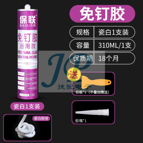 "免钉胶强力胶瓷砖免打孔粘胶透明玻璃胶水置物架踢脚线木工专用-通用型1支瓷白【环保强力】送刮板"商品可能已被商家删除,您可查看其他相似商品!