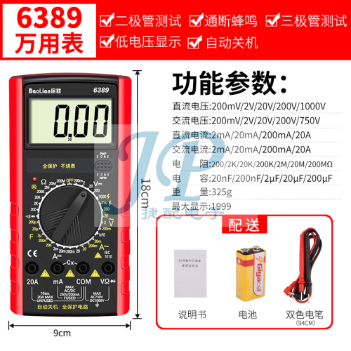 "钳形表高精度自动数显万用表多功能小型便携式温度频率电容电流表-【经济实惠款】6389万用表 标配 手动量程"商品可能已被商家删除,您可查看其他相似商品!
