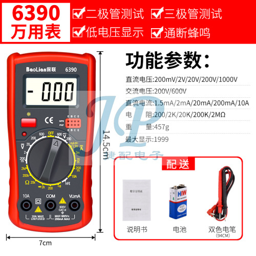 "钳形表高精度自动数显万用表多功能小型便携式温度频率电容电流表-【经济实惠款】6390万用表 标配 手动量程"商品可能已被商家删除,您可查看其他相似商品!