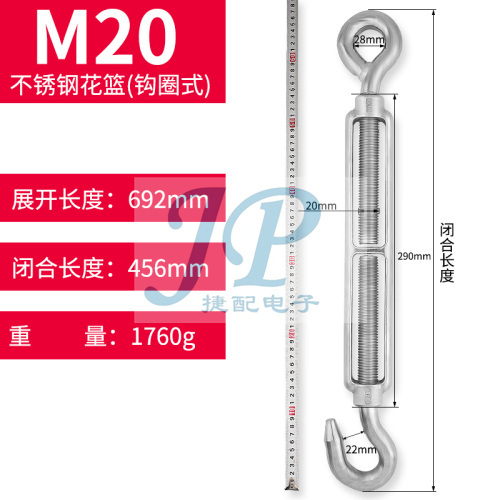 "304不锈钢花篮螺丝钢丝绳索拉紧螺杆拉紧器紧绳器紧线器花兰螺栓-不锈钢M20(钩圈式)"商品可能已被商家删除,您可查看其他相似商品!