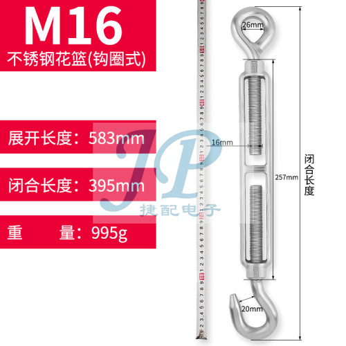 "304不锈钢花篮螺丝钢丝绳索拉紧螺杆拉紧器紧绳器紧线器花兰螺栓-不锈钢M16(钩圈式)"商品可能已被商家删除,您可查看其他相似商品!