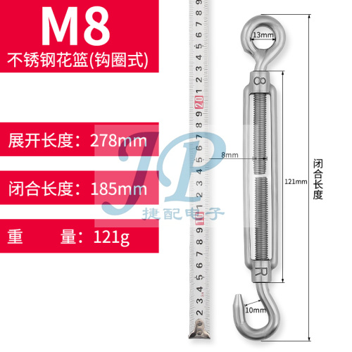 "304不锈钢花篮螺丝钢丝绳索拉紧螺杆拉紧器紧绳器紧线器花兰螺栓-不锈钢M8(钩圈式)"商品可能已被商家删除,您可查看其他相似商品!
