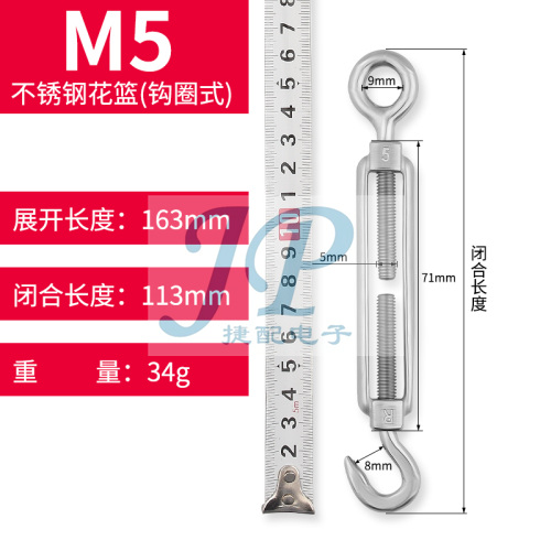 "304不锈钢花篮螺丝钢丝绳索拉紧螺杆拉紧器紧绳器紧线器花兰螺栓-不锈钢M5(钩圈式)"商品可能已被商家删除,您可查看其他相似商品!