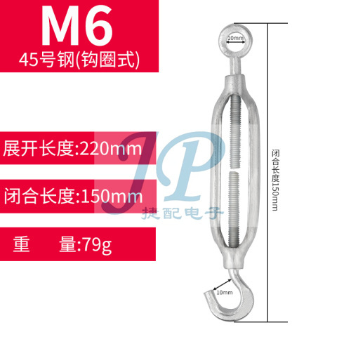 "304不锈钢花篮螺丝钢丝绳索拉紧螺杆拉紧器紧绳器紧线器花兰螺栓-45号钢M6(钩圈式)"商品可能已被商家删除,您可查看其他相似商品!