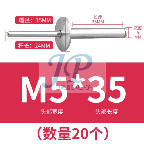 "大帽铆钉铝制圆头大帽沿拉铆钉抽芯铆钉大头拉钉大扁头汽车拉铆钉-大帽拉钉5*35(20支)"商品可能已被商家删除,您可查看其他相似商品!