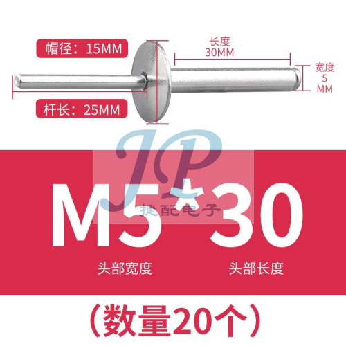 "大帽铆钉铝制圆头大帽沿拉铆钉抽芯铆钉大头拉钉大扁头汽车拉铆钉-大帽拉钉5*30(20支)"商品可能已被商家删除,您可查看其他相似商品!