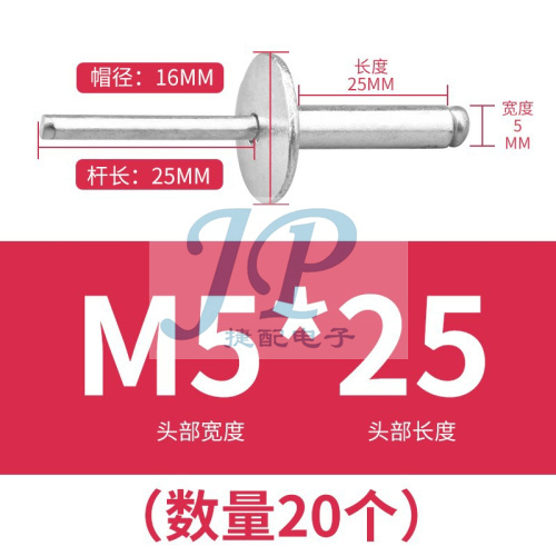 "大帽铆钉铝制圆头大帽沿拉铆钉抽芯铆钉大头拉钉大扁头汽车拉铆钉-大帽拉钉5*25(20支)"商品可能已被商家删除,您可查看其他相似商品!