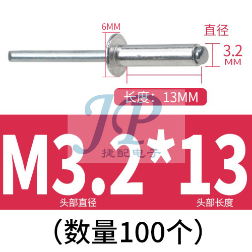 "大帽铆钉铝制圆头大帽沿拉铆钉抽芯铆钉大头拉钉大扁头汽车拉铆钉-M3.2*13(100支)"商品可能已被商家删除,您可查看其他相似商品!