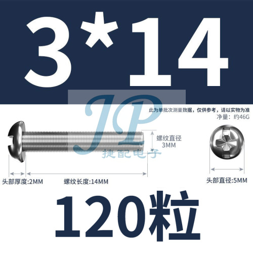 "镀锌超硬十字圆头螺丝M3M4M5M6手拧小螺钉加长开关插座固定螺丝钉-M3*14【120个】"商品可能已被商家删除,您可查看其他相似商品!