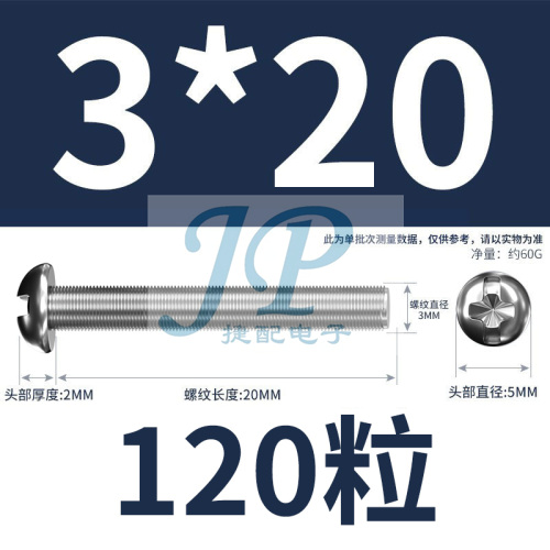 "镀锌超硬十字圆头螺丝M3M4M5M6手拧小螺钉加长开关插座固定螺丝钉-M3*20【120个】"商品可能已被商家删除,您可查看其他相似商品!