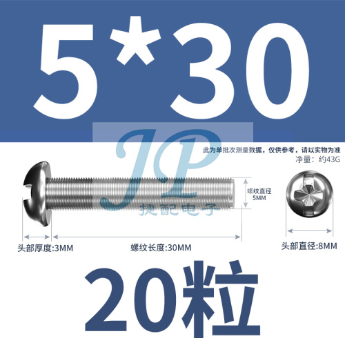 "镀锌超硬十字圆头螺丝M3M4M5M6手拧小螺钉加长开关插座固定螺丝钉-M5*30【20个】"商品可能已被商家删除,您可查看其他相似商品!