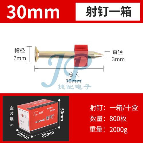 "硬质水泥钉射钉钢钉广告钉挂画钉墙钉空调钉枪钉带胶套22-52mm-射钉32# 3×30mm(整箱十盒800粒)"商品可能已被商家删除,您可查看其他相似商品!