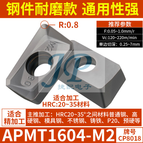 "数控铣刀片APMT1135钢件硬质合金1604铣刀片快进给R0.8铣床刀粒头-APMT1604-M2 钢件/不锈钢十片装 【推荐加工HRC20~35材料】"商品可能已被商家删除,您可查看其他相似商品!