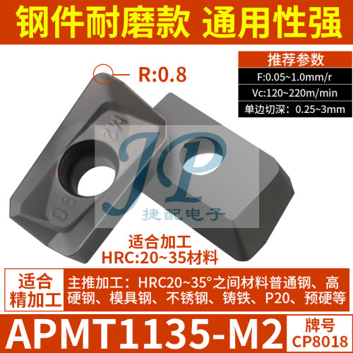 "数控铣刀片APMT1135钢件硬质合金1604铣刀片快进给R0.8铣床刀粒头-APMT1135-M2 钢件/不锈钢十片装 【推荐加工HRC20~35材料】"商品可能已被商家删除,您可查看其他相似商品!