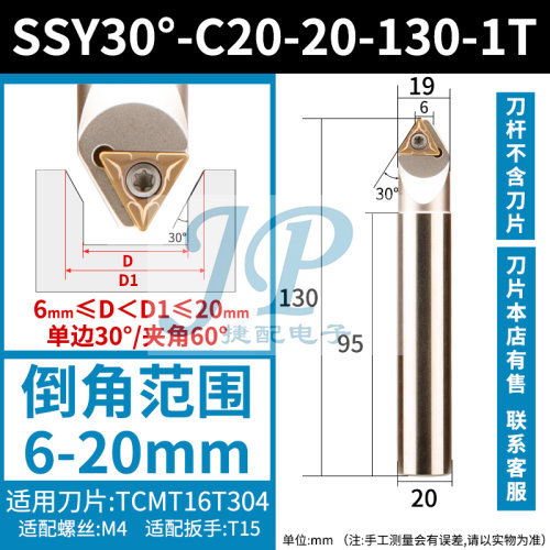"数控倒角刀杆内孔倒角刀60度机夹加工中心正反双面去毛刺直柄倒角-SSY30°-C20-20-130-1T【柄径20】【总长130】【刃数1】 【加工范围6-20】"商品可能已被商家删除,您可查看其他相似商品!