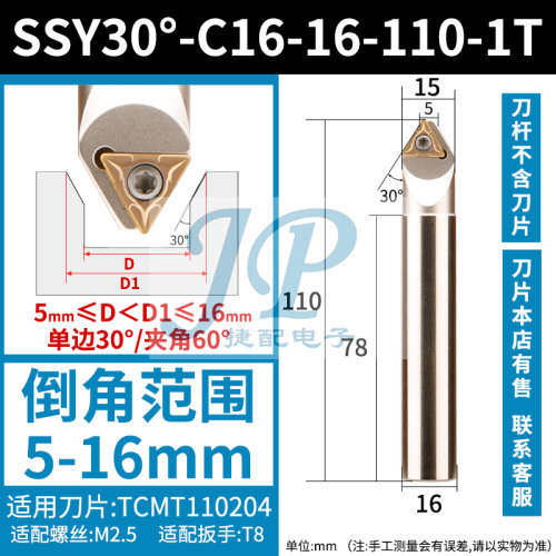 "数控倒角刀杆内孔倒角刀60度机夹加工中心正反双面去毛刺直柄倒角-SSY30°-C16-16-110-1T【柄径16】【总长110】【刃数1】 【加工范围5-16】"商品可能已被商家删除,您可查看其他相似商品!