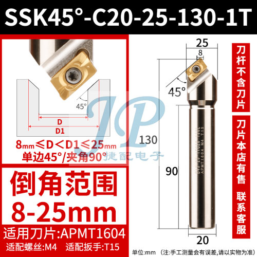 "数控倒角刀杆内孔倒角刀60度机夹加工中心正反双面去毛刺直柄倒角-SSK45°-C20-25-130-1T【柄径20】【总长130】【刃数1】 【加工范围8-25】"商品可能已被商家删除,您可查看其他相似商品!