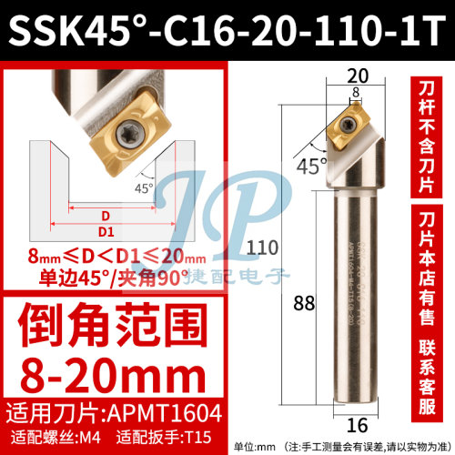 "数控倒角刀杆内孔倒角刀60度机夹加工中心正反双面去毛刺直柄倒角-SSK45°-C16-20-110-1T【柄径16】【总长110】【刃数1】 【加工范围8-20】"商品可能已被商家删除,您可查看其他相似商品!