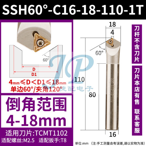 "数控倒角刀杆内孔倒角刀60度机夹加工中心正反双面去毛刺直柄倒角-SSH60°C16-18-110-1T【柄径16】【总长110】【刃数1】 【加工范围4-18】"商品可能已被商家删除,您可查看其他相似商品!