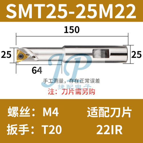 "加工中心SMT16内螺纹铣刀杆单刃螺纹铣刀数控SMT16单牙刀T型刀杆-SMT25-25M22【加工直径25mm】 【柄径25mm】【长度150mm】"商品可能已被商家删除,您可查看其他相似商品!