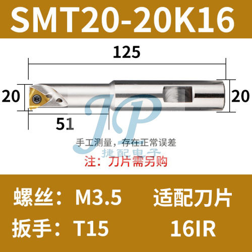 "加工中心SMT16内螺纹铣刀杆单刃螺纹铣刀数控SMT16单牙刀T型刀杆-SMT20-20K16【加工直径20mm】 【柄径20mm】【长度125mm】"商品可能已被商家删除,您可查看其他相似商品!