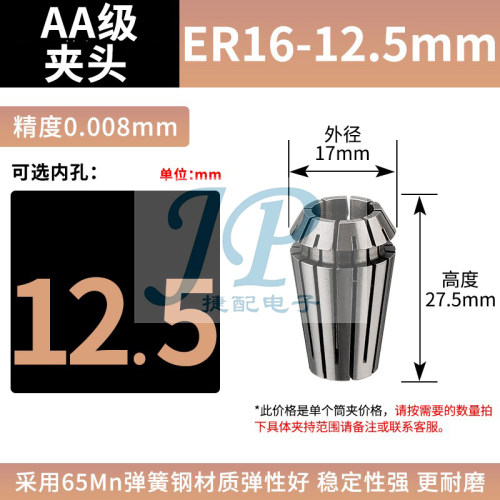 "er夹头小孔大孔径高精度主轴弹簧数控雕刻机筒夹er11 16 20 25 32-ER16【夹持大小12.5MM】精度0.008mm"商品可能已被商家删除,您可查看其他相似商品!